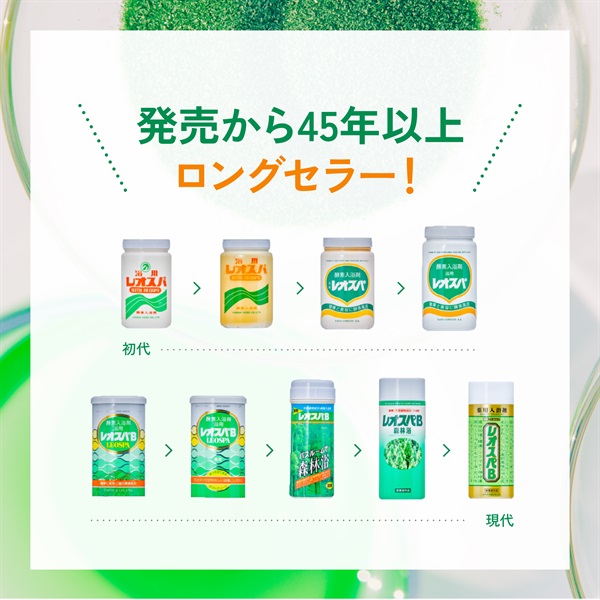 日本初!薬用酵素入浴剤。浴用レオスパBは発売から45年以上愛され続けています。活きたままの酵素を配合。創業当初から酵素を研究し続け、たどり着いた独自ブレンドのトリプル有効成分が短時間で体を芯まで温め、腰痛・肩こり・冷え症を改善!お湯あたりも滑らかで、湯上がり肌はつるっつる。