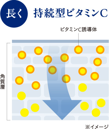ビタミンC誘導体はピュアビタミンCに化学修飾することで、安定化を高め肌に浸透しやすくしたもので、肌の中の酵素によって分解されることでビタミンCとして働くため時間をかけて効果を発揮することから、持続型ビタミンCともいわれています。