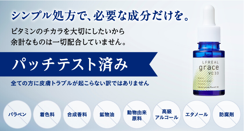 ピュアビタミンCと相性のいいビタミンA誘導体とビタミンEに加え、持続型のビタミンC誘導体を配合しました。3つのビタミンは非常に抗酸化作用が高く、肌の土台を整えます。