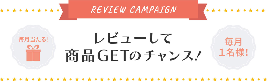 レビューを投稿していただいたお客様の中から、 毎月1名様に抽選で商品をプレゼント!